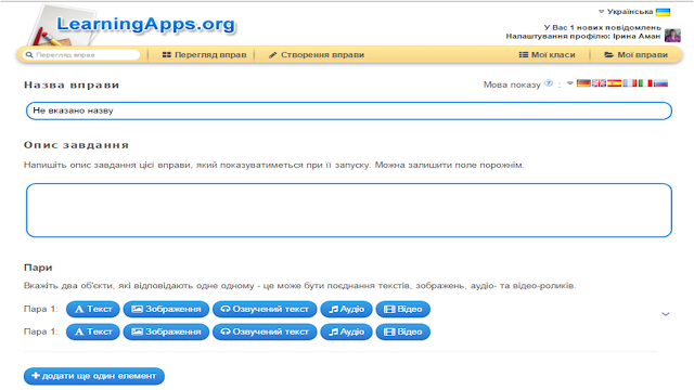 Зверніть вагу: у вправах можна додавати текст, зображення, звук, відео.